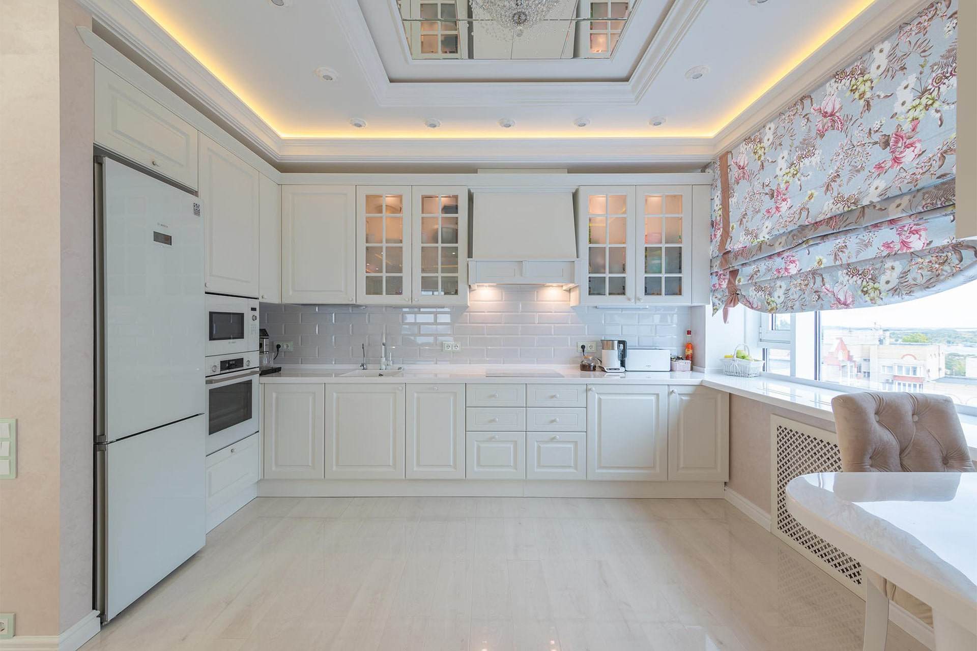 Кухня белого цвета — идеальный выбор для современного дома. Она зрительно расширяет пространство, делая даже маленькую комнату светлой и уютной. Белый цвет отражает до 80 % света, именно поэтому помещение кажется просторнее, а интерьер — визуально легче. Белые кухонные гарнитуры универсальны и впишутся в интерьерные решения от минимализма до классики. Особенно эффектно кухни белого цвета смотрятся в глянцевом исполнении. Вопрос уборки современных технологичных покрытий легко решается с помощью влажной тряпкой.