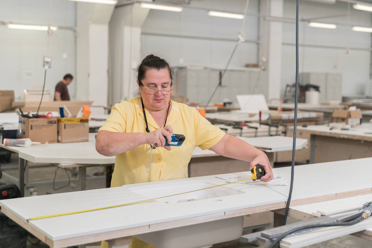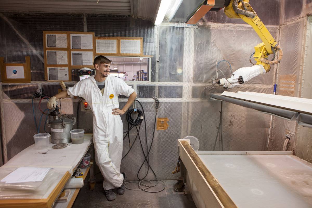 «Скульпторы» каждый месяц изготавливают более 1 500 столешниц из искусственного камня. Более 80% работ выполняется вручную.